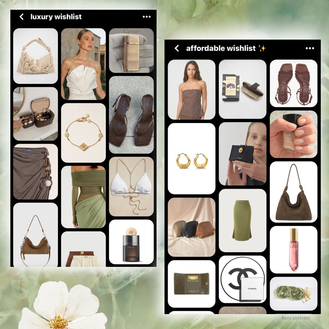 it doesn’t hurt to be a bit delusional. life has been lacking luster lately. I escape into the realm of fantasy pinning things to my ‘luxury wishlist’ board. but even my ‘affordable wishlist’ has been stressing me out. the materialistic pursuits of glowing up have been exacting.
